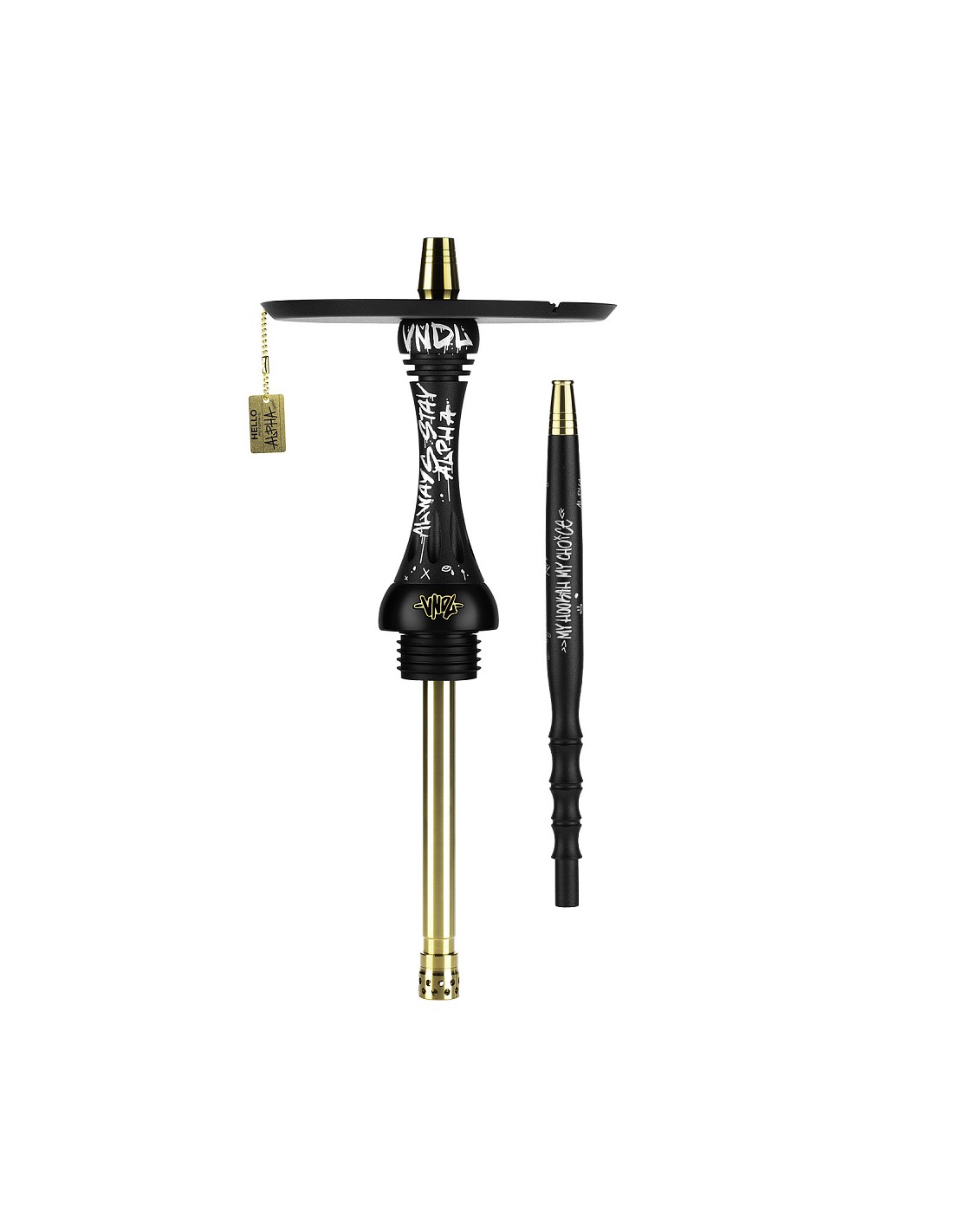 Cada detalle de la cachimba Model X VNDL está cuidadosamente diseñado para ofrecer una experiencia única. Desde las grabados artísticos en la base, hasta el elegante acabado dorado de los elementos de acero inoxidable, esta cachimba es una declaración de estilo y personalidad. Además, el toque adicional de un llavero de acero estilizado en el plato, refuerza su carácter distintivo.