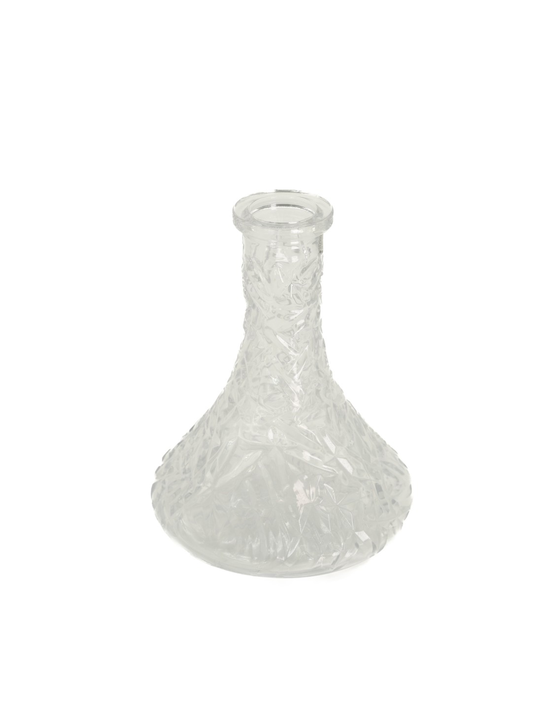 Base de cristal de forma piramidal, con tallado estilo rock. De encaje a goma y unos 25cm, es ideal para dar un salto de calidad a tu cachimba, con unos colores y acabados increíbles.