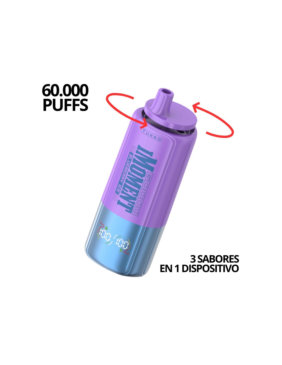 El nuevo vaper desechable 3 en 1 redefine la forma de disfrutar del vapeo. Gracias a su innovadora boquilla giratoria, podrás alternar entre tres sabores diferentes en un solo dispositivo, sin complicaciones, recargas ni mantenimiento. Diseñado para quienes buscan comodidad, variedad y potencia, ofrece una autonomía espectacular de hasta 60.000 caladas.
